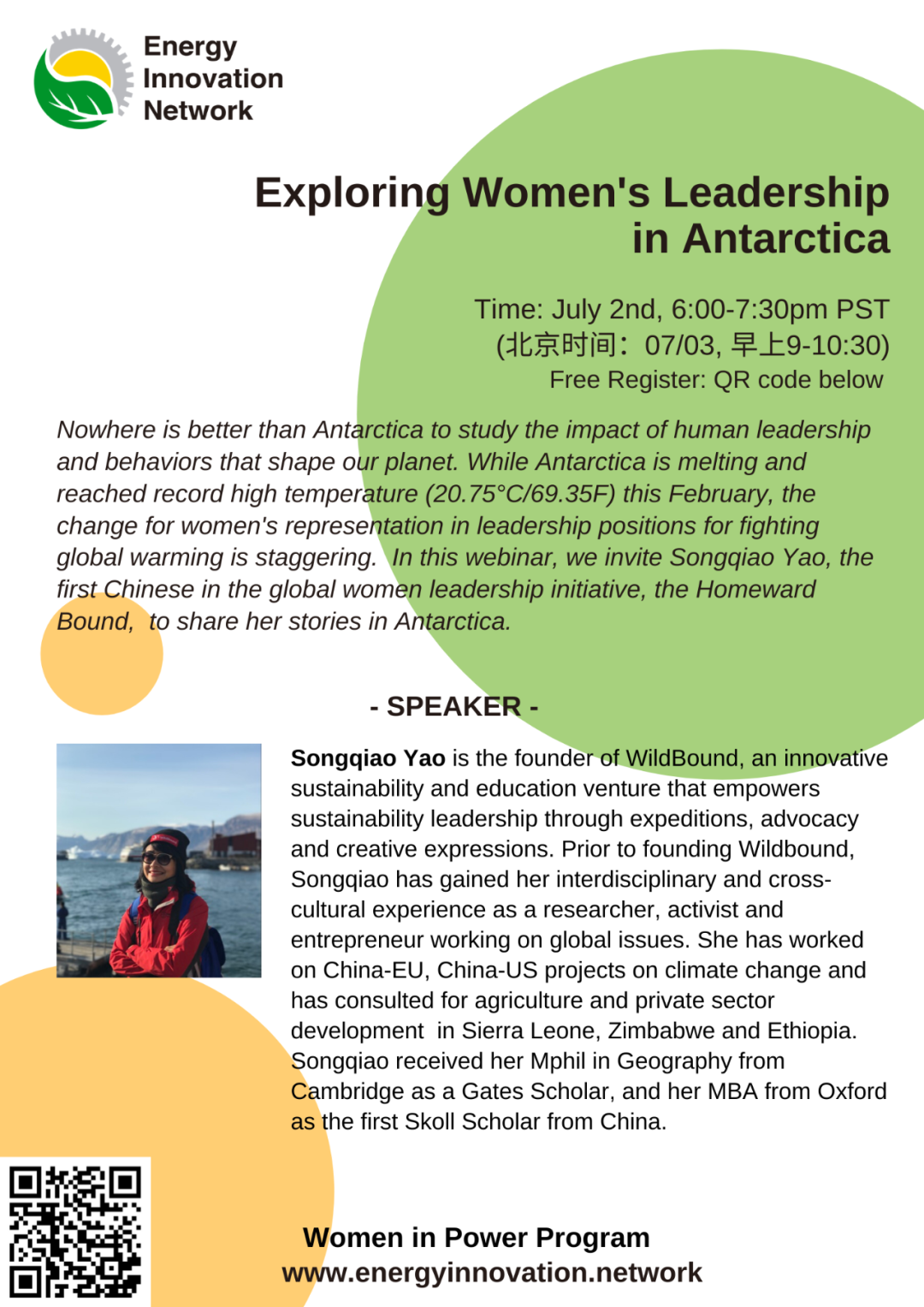 在全球应对气候变暖的各界领导者中,女性身影却少得惊人。在此网络研讨会中,我们邀请到全球女性领导力活动:家园归航(Homeward Bound)的首位华人参与者,姚松乔,与我们分享她与南极的故事。
