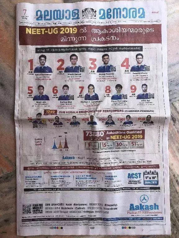 每年的四月底到六月初,是印度高中毕业考试和大学入学考试的放榜日。在城市和乡村的大街小巷,随处可见优秀学生的成绩榜单,一方面表彰先进,另一方面,也是学校和补习机构给自己打广告。论比较考试成绩和排名,印度人的热衷程度一点也不亚于中国人。