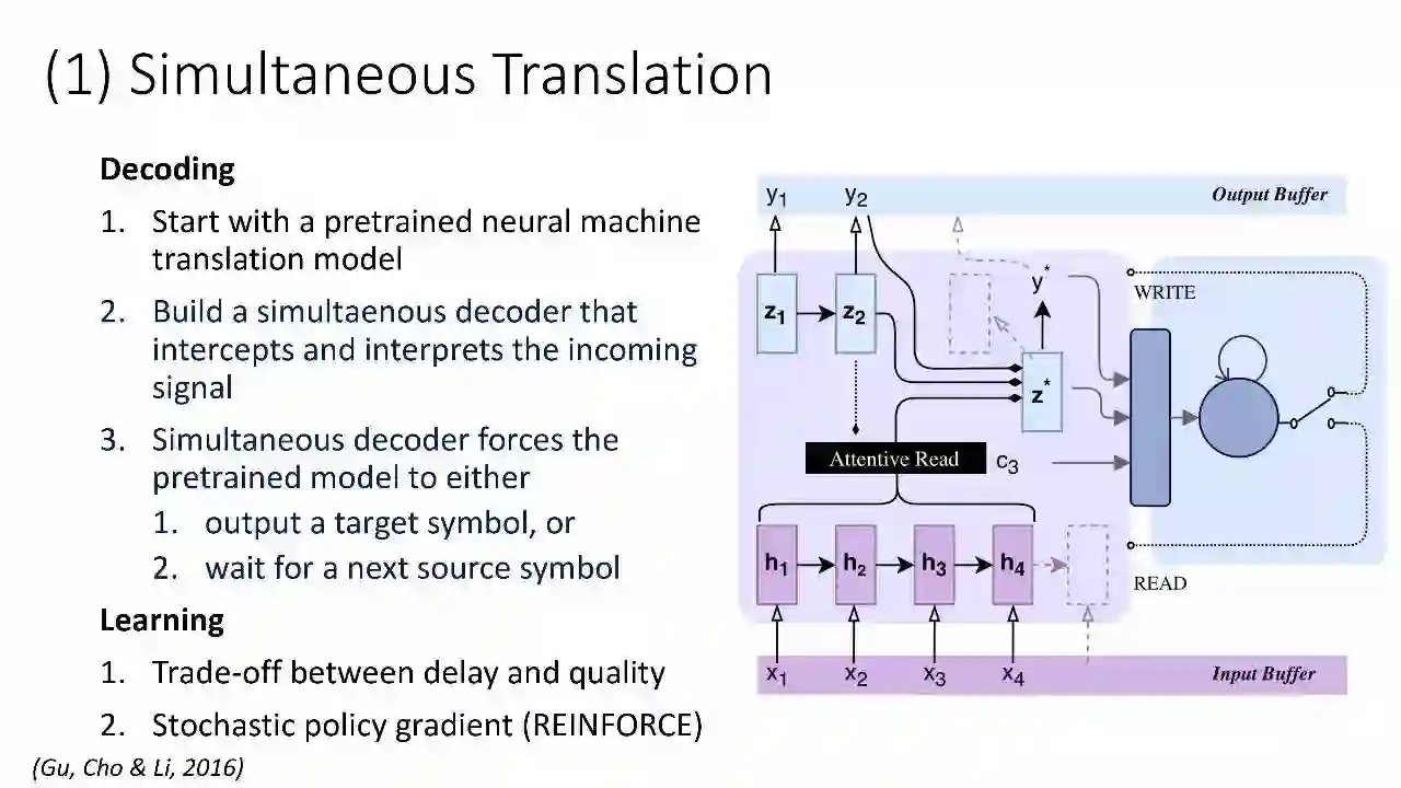 3. 同声传译解码器也强制预培训模型①输出目标符号,或②等待下一个源符号