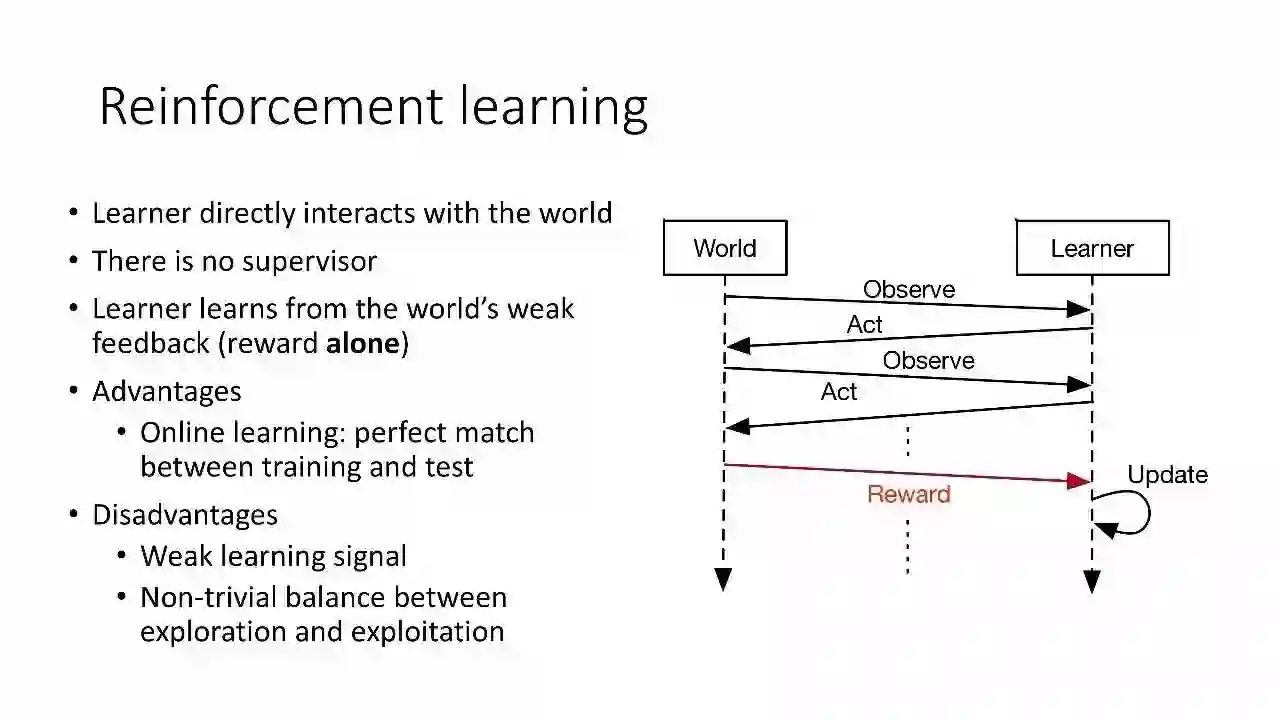 学习者从监督者的反馈(奖励,正确答案)中学习