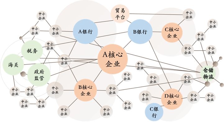 2.拓展覆盖核心企业范围。传统供应链金融中,参与主体是大银行和特大型企业,而特大型企业的供应链上下游涉及众多层级,长尾端(多级)中小企业存在信息不对称、贸易真实性难核验等问题,无法被纳入银行服务范畴。智能供应链金融运用大数据、区块链、云计算等科技手段,打破了各层级之间的交易壁垒,重新定义了“核心企业”,众多的大型地区性、地方性优质企业、骨干企业甚至B2B、B2C平台将成为新的“核心企业”。借助智能供应链金融平台连通、互信、穿透等特点,对这些新“核心企业”的链属中小企业的风控,将不再仅仅依赖于“核心企业”的信用,而是进一步引入终端零售、物流、水电煤、税务、企业主信用等多维数据,对中小企业进行全方位风险画像,实现中小企业风险的精准定价。