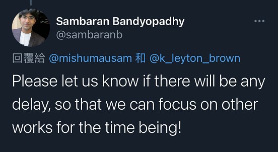 对此,有论文作者表示:“如果有任何延迟请让我们知道,我好把时间用到别的地方去。”