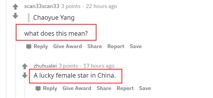 随即就有一位外国网友问到:Chaoyue Yang 是神意思?