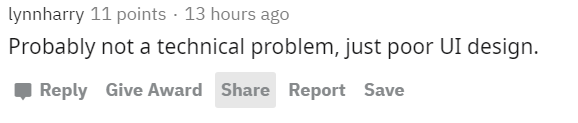 对此,有网友回复说这可能不是技术问题,而是UI设计不合理。
