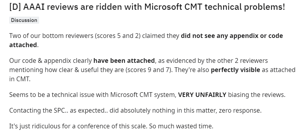 这似乎是Microsoft CMT系统的技术问题,这非常不公平地使评审对我们产生了偏见。