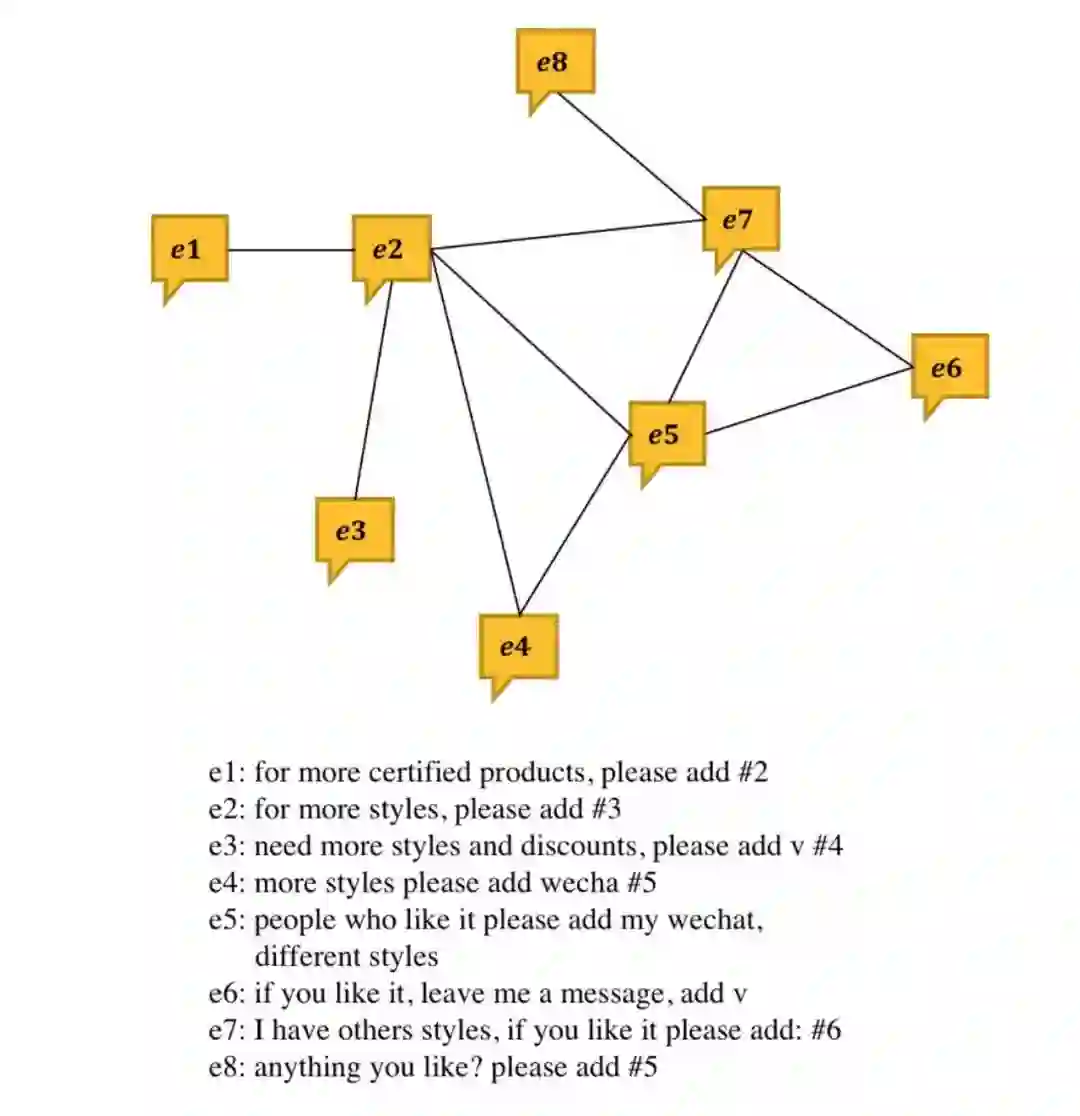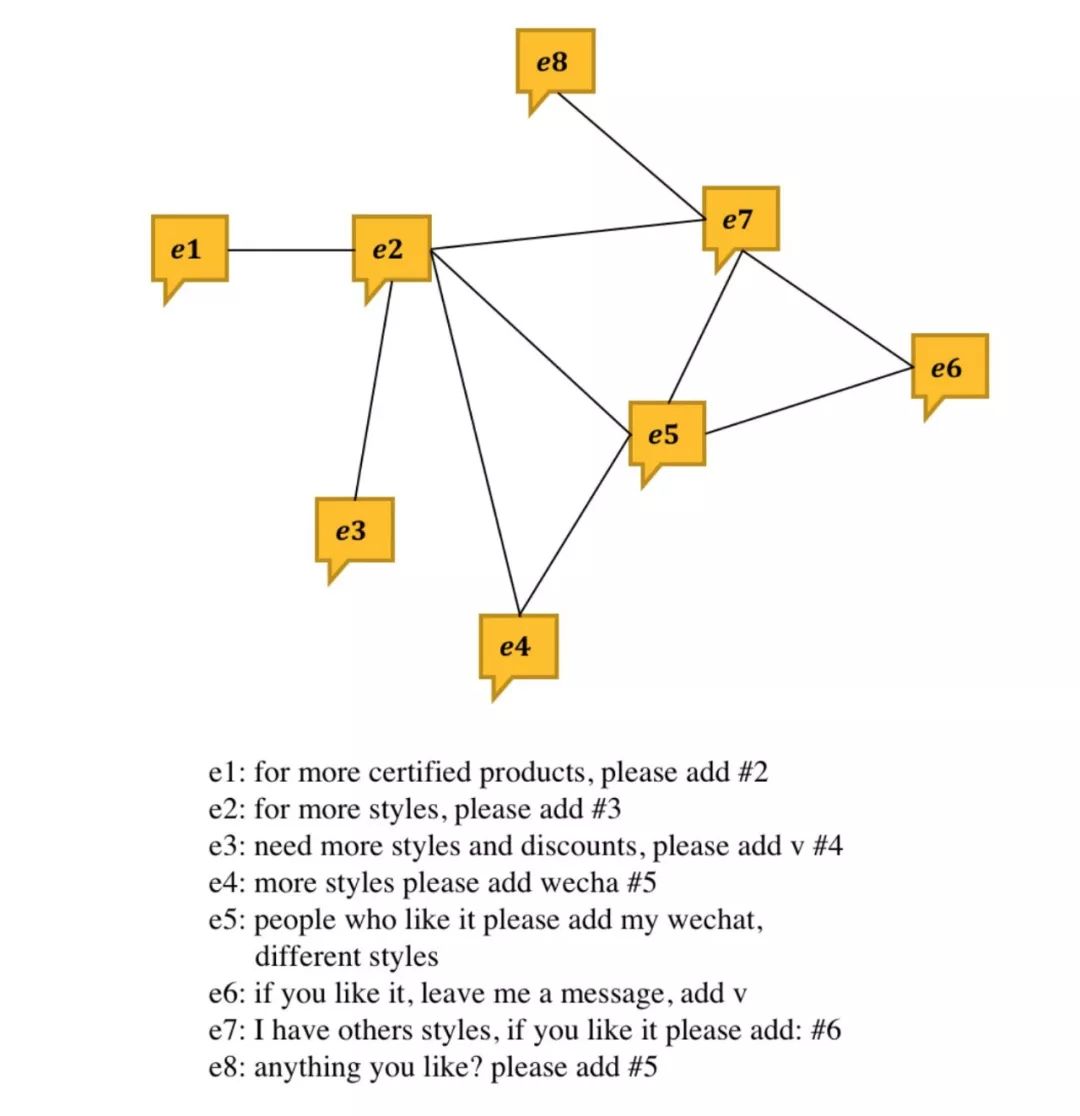 关键字替换:使用少见的中文字符、笔误,甚至表情符号替换关键字,例如「加我的 VX/V/WX」都表示加我的微信。