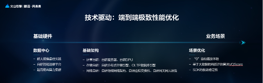 基于字节大规模实践和技术创新,火山引擎提供了从基础硬件到业务场景的端到端性能优化。