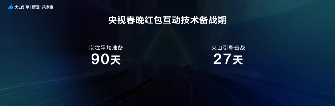 在「新云·共未来」火山引擎云产品发布会上,字节跳动副总裁、火山引擎业务负责人杨震原讲道,「去年距离除夕只有27天的时候,我们顺利完成了这个工作。而在以前,这类活动一般都会有3个月的准备时间。」
