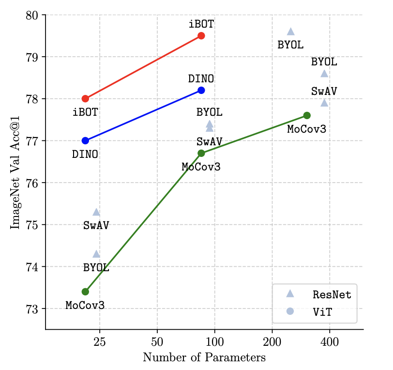 线性分类方面,iBOT在ImageNet-1K上取得了81.6%的准确度,也是目前最高的结果。