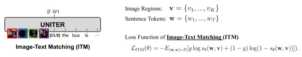 Image-TextMatching(ITM)中,需要对输入的 Image-Text Pair 随机替换 Image 或者 Text,最后预测输入的 Image 和 Text 是否有对应关系,所以这是一个二分类的问题。
