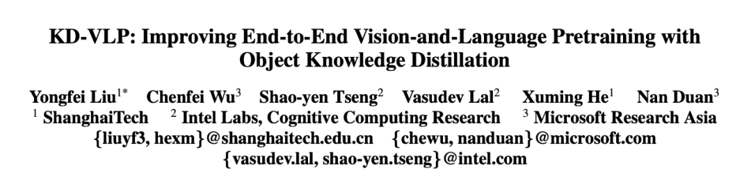 这篇文章的 Motivation 和 E2E-VLP 一样,也是为了解决端到端模型中的视觉 grid 特征,没法捕获对象级信息的问题。这篇文章的方法采用了知识蒸馏的思想,将目标检测的信息融合到预训练任务之中。