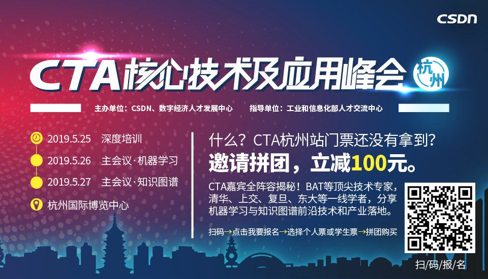5月25-27日,由中国IT社区CSDN与数字经济人才发展中心联合主办的第一届CTA核心技术及应用峰会将在杭州国际博览中心隆重召开,峰会将围绕人工智能领域,邀请技术领航者,与开发者共同探讨机器学习和知识图谱的前沿研究及应用。