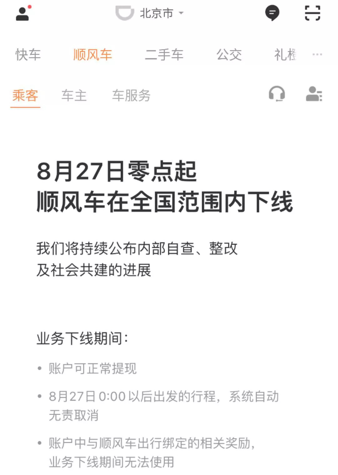 在乐清女孩遇害事件发生后,滴滴宣布从8月27日零时起在全国范围内下线顺风车业务,内部将重新评估其业务模式及产品逻辑。