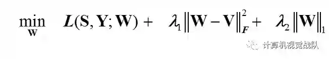 最后再加一个参数W的正则项(为了增加鲁棒性),整个公式为: