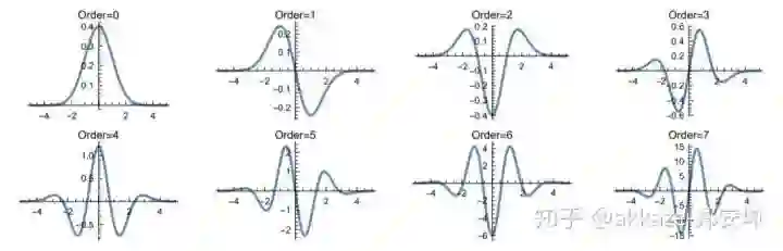 我们选择高斯函数(其实还有更多的选择,比如著名的gabor小波)及其导数作为基底函数,它们构成了高斯小波基,