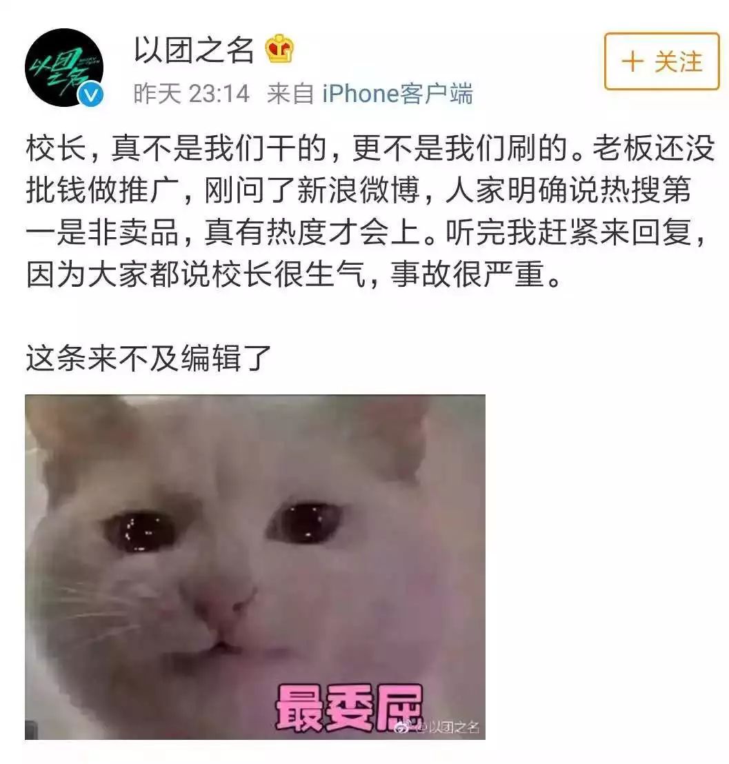 优酷《以团之名》回应王思聪指责:没买热搜,真有热度才会上