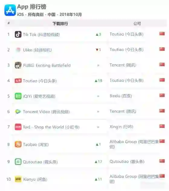 App Annie:抖音占据10月中国iOS下载榜榜首