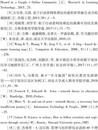 行动者网络理论(Actor- Network Theory,简称ANT),又称转译社会学或者物质性符号学,是由以米歇尔·卡龙( Michel callon)、布鲁诺·拉图尔( Bruno latour)和约翰·劳( John Law)等为代表的巴黎学派提出的后结构主义解释框架。之后,研究者对其不断进行丰富和拓展。“行动者网络理论是一个有关材料符号工具、感性和分析方法完全不同的家族,在社会和自然世界中看待任何事情作为它们所处的关系网络中不断产生的影响”[3],以网络中异质行动者联合行动为核心,对事物发展进行多样性诠释。“行动者网络理论在过去30年里得到社会学领域的广泛认可,尤其是在科学和技术研究方面,并且越来越多地引起教育研究人员的注意”[4]。它对虚拟(学习)社区研究提供新的理论视角和方法论,引起研究者的关注。基于行动者网络理论,周桂林等分析了虚拟社区系统的社会建构主体,提出电子商务信任“非对称作用”发生机制,并对“广义相对性原则”进行修正[5]。为了探讨学习者和移动学习所使用技术之间的关系以及“可供性”概念的价值, Wright等基于行动者网络理论视角,探讨“可供性”是如何呈现的,尤其是探讨其定位和控制移动设备作为学习技术的方式[6]。 Johannesen等运用行动者网络理论,通过实证研究分析挪威社会教育机构工作者和他们的实践,研究结果表明虚拟学习环境有助于塑造和巩固网络[7]。Ackland等运用行动者网络理论研究在高等教育专业发展模块背景中,物质构成在虚拟学习网络进入和障碍产生中是如何发挥功效的,以更为全面地理解虚拟世界中社会学习网络的组成和动态,获得对持续发展在线学习的启示[8]。方引青等认为行动者网络理论为探讨虚拟世界的融合提供了全新的视角,也为相关领域的研究提供了一定的理论支撑,并运用行动者网络的转译原理对虚拟世界融合的动力机制进行诠释,研究结果表明,通过行动者网络的建立,可以全面揭示虚拟世界融合过程中的动力因素和各行动者之间的作用机制[9]。在慕课可持续发展遭遇瓶颈的背景下,郑锦菁等借鉴行动者网络理论,针对当前慕课平台建设所面临的障碍和困境,从政府、平台运营商、高校、教师、学习者等人类行动者和课程资源等非人类行动者两个层面提出推进慕课本土化建设的路径[10]。对于学习地图的探讨,研究者主要集中在以组织的学习资源为基础,结合岗位能力素质模型与职业发展路径,为任职者提供目标明确的学习任务、时段和方式及考核标准与职业发展方向高度吻合的学习发展规划[11],探讨了企业生产技能人员、管理人员、公务员等群体学习地图的构建。此外,研究者还将数字化或互联网与学习地图结合起来探讨,如Wang等构建了基于博客的动态学习地图,运用信息检索和自动调节技术,提供有用的博客文章帮助学习,结果表明学习者以非常积极的方式利用博客的学习帮助,最终在测试中通过制定的阈值[12]。张国杰等以微信小程序为开发载体,分析了数字化社区学习地图的系统设计、关键技术及其功能作用[13]。冯叶飞等则针对传统社区教育存在的信息获取不便、学习报名不畅以及参与学习不灵活等问题,以宁波市江北区为个案,对数字化社区学习地图应用于社区教育的适切性以及在社区教育中所取得的成效进行剖析,并指出基于数字化社区学习地图的社区教育发展呈现出“想学可学”“想学就学”和“想学乐学”的动向[14]。综上所述,研究者虽然在行动者网络理论与虚拟(学习)社区有机结合以及学习地图方面取得一定进展,但是到目前为止尚未有将行动者网络理论与数字化社区学习地图结合的构成、运行机制等方面的专题研究。