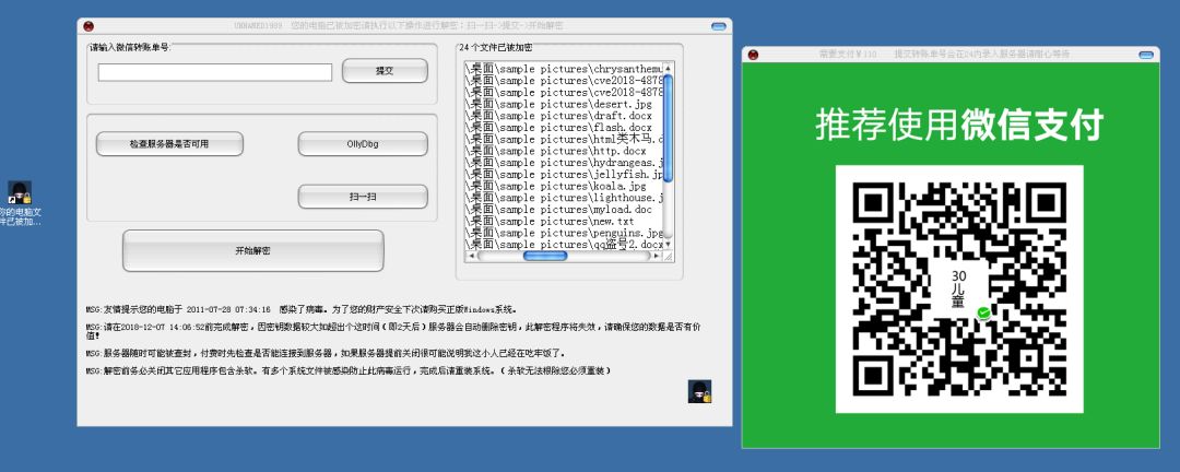 这个病毒之所以被叫做“微信勒索病毒”,是因为它通过微信支付勒索钱财。