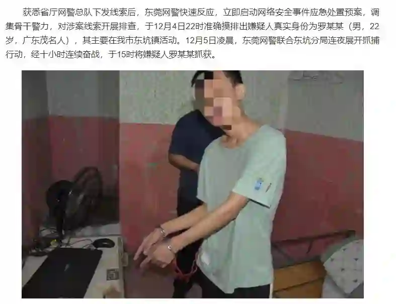 就在2018年12月6日晚上,微博“平安东莞”发布了一条消息。没错,LSY 老湿落网了。。。