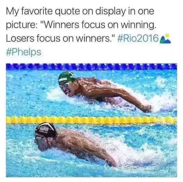 最后分享一张很喜欢的去年里约奥运会菲尔普斯夺冠的图: