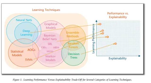 XAI 计划假设机器学习性能(例如,预测准确性)和可解释性之间存在固有矛盾关系,这一问题与当时的研究结果一致。通常性能最高的方法(例如深度学习)是最难解释的,而最可解释的(例如决策树)是最不准确的。该计划希望创建一系列新的机器学习和解释技术,为未来的从业者提供更广泛的设计选项,涵盖性能-可解释性交易空间。如果应用程序需要更高的性能,XAI 产品组合将包括更可解释、高性能的深度学习技术。如果应用系统需要更多的可解释性,XAI 将包括性能更高、可解释的模型。
