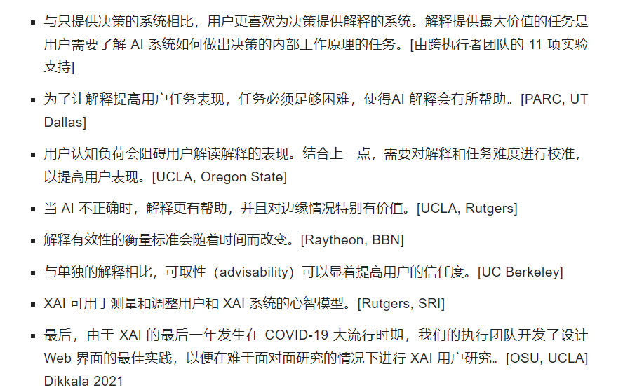 与 2015 年相比,今天我们对 AI 的理解更加细致入微、不那么戏剧化,或许也更加准确。我们当然对深度学习的可能性和局限性有了更准确的理解。人工智能的末日已经从迫在眉睫的危险变成了遥远的好奇。同样,XAI 计划对 XAI 产生了更细致入微、不那么戏剧化、或许更准确的理解。该计划无疑起到了促进 XAI 研究(包括计划内部和外部)的作用。结果对 XAI 的使用和用户、XAI 的心理、衡量解释有效性的挑战以及产生新的 XAI ML 和 HCI 技术组合有了更细致的理解。当然还有更多工作要做,特别是随着新的人工智能技术的开发,这些技术将继续需要解释。XAI 将在一段时间内继续作为一个活跃的研究领域。作者认为,XAI 计划通过为开展这项工作奠定了基础,做出了重大贡献。