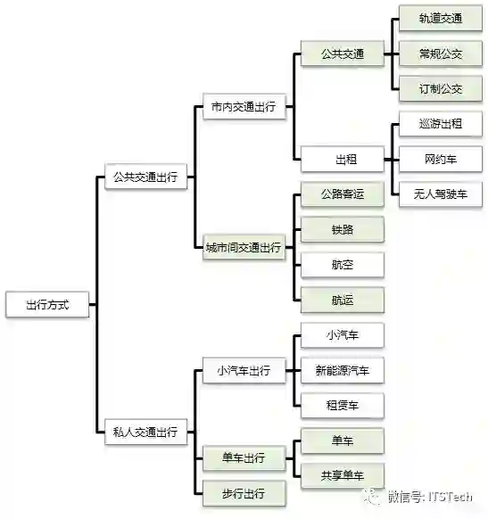 从提倡绿色交通的角度,又可将交通出行中能源消耗较少的交通出行方式称作绿色交通出行,如城市公共交通、单车和步行出行方式。