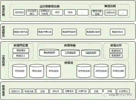 数据源层通过采集各个运输服务商提供的票务数据、路网数据、运输设备GPS数据以及互联网的其他相关数据,汇聚接入到云计算平台,为云计算平台提供基础数据支撑。