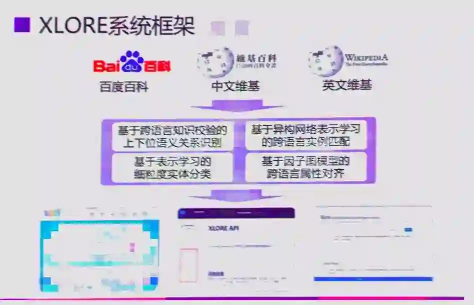 XLORE是中英文知识规模平衡的大规模跨语言百科知识图谱。该图谱通过融合中文、英文的维基百科和百度百科,并对百科知识进行结构化和跨语言链接构建而成。