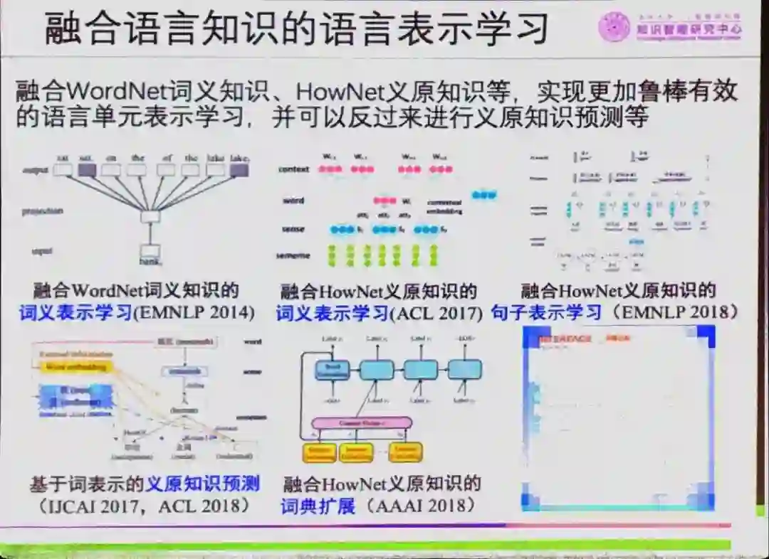 2017年以来,清华大学研究团队系统探索HowNet知识库在深度学习时代的应用价值,并在词汇语义表示、句子语义表示、词典扩展等任务上均得到了验证。研究发现,HowNet通过统一的义原标注体系直接精准刻画语义信息,一方面能够突破词汇屏障,深入了解词汇背后丰富语义信息;另一方面每个义原含义明确固定,可被直接作为语义标签融入机器学习模型,使自然语言处理深度学习模型具有更好的鲁棒可解释性。相关成果均发表在AAAI、IJCAI、ACL、EMNLP等人工智能和自然语言处理领域顶级国际会议上。