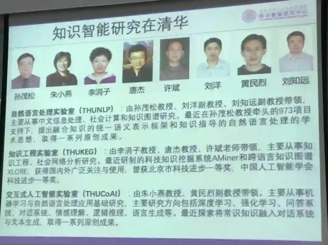 2019年1月21日,清华大学人工智能研究院在清华大学FIT楼举行知识智能研究中心成立仪式暨知识计算开放平台发布会,清华大学副校长、清华大学人工智能研究院管委会主任尤政院士,人工智能研究院院长张钹院士、常务副院长孙茂松教授出席仪式并致辞。