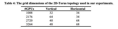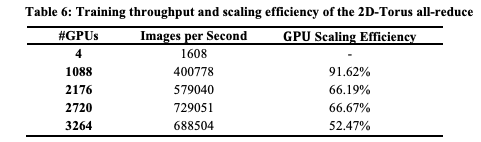 表6:2D-Torus all-reduce的训练吞吐量和scaling效率