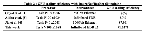 表2:ImageNet/ResNet-50训练的GPU scaling 效率