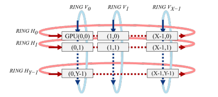 具体而言,2D-Torus all-reduce将GPU排列在一个逻辑2D网格中,并以不同的方向执行一系列操作。