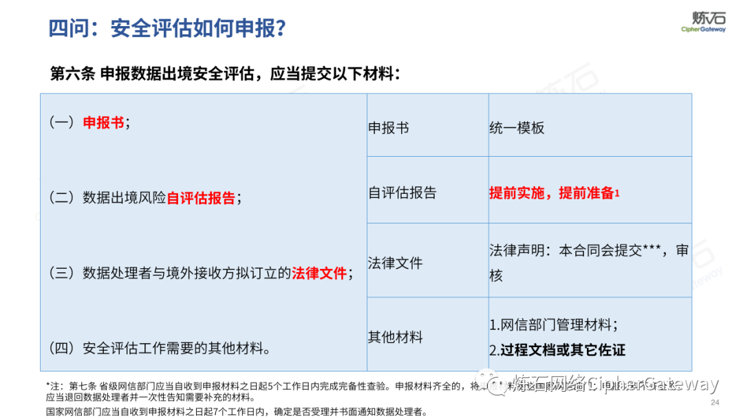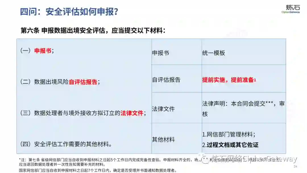 第六条 申报数据出境安全评估,应当提交以下材料:
