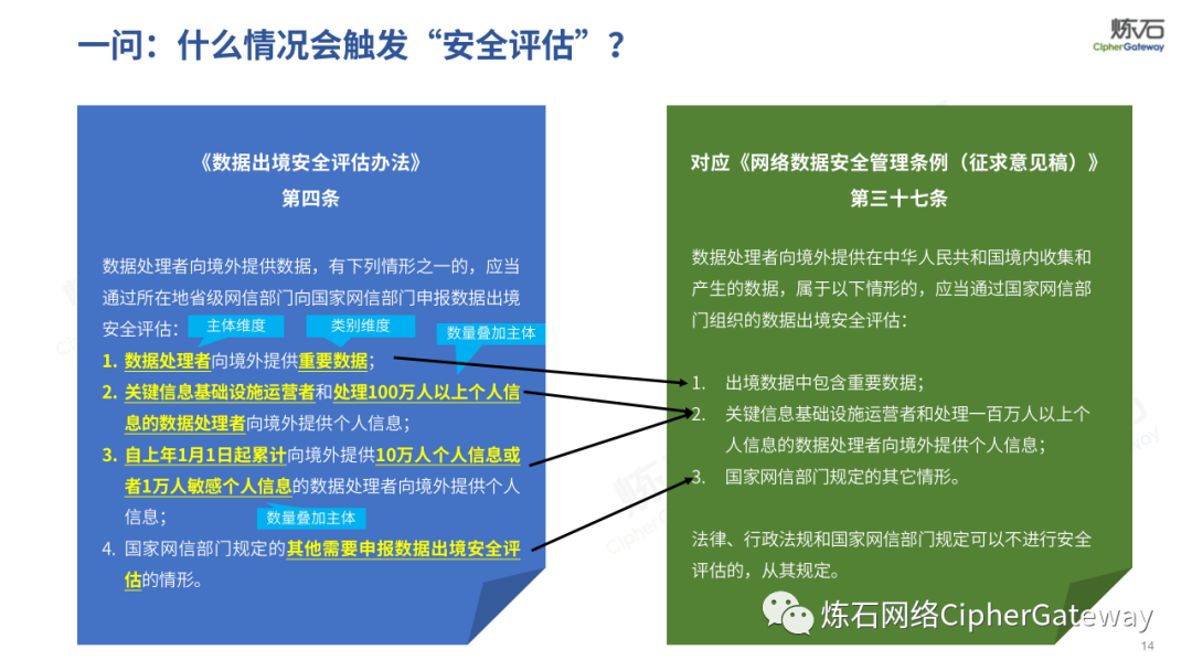 (一)关键信息基础设施的运营者收集和产生的个人信息和数据处理者向境外提供重要数据;