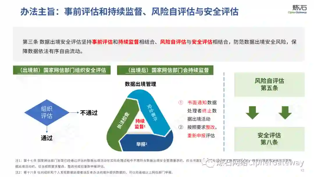 第三条 数据出境安全评估坚持事前评估和持续监督相结合、风险自评估与安全评估相结合,防范数据出境安全风险,保障数据依法有序自由流动。