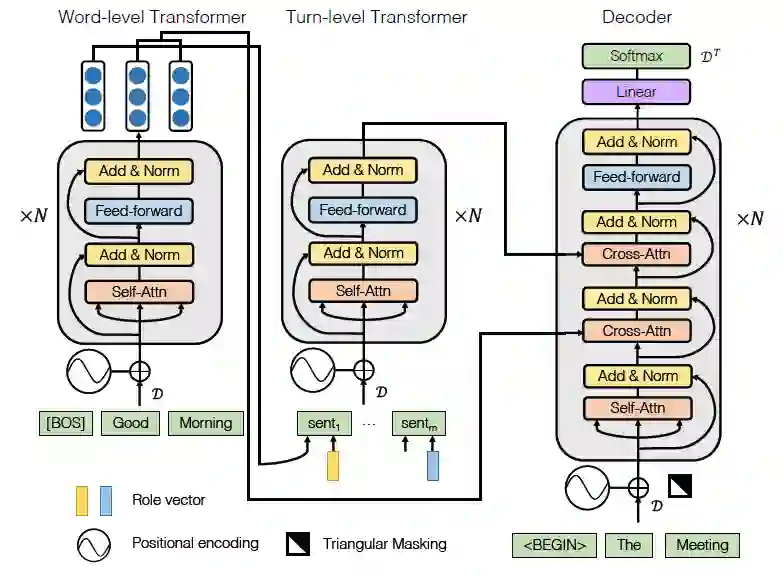 HMNet 是一个 Hierarchical Transformer,能够融合整个对话文本和角色信息,端到端地生成会议摘要。