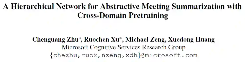 [1] EMNLP 2020: A Hierarchical Network for Abstractive Meeting Summarization with Cross-Domain Pretraining