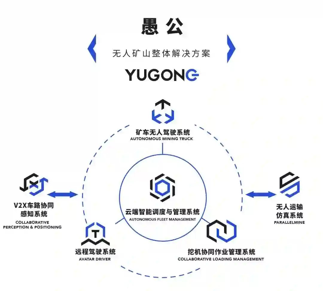 自动化所平行智能技术与系统团队多年来深耕基于ACP的平行智能理论、方法与技术,积极推动相关成果为国民经济发展服务。依托团队数十年技术沉淀,自动化所孵化企业慧拓智能首创研发“愚公YUGONG”无人矿山整体解决方案。“愚公YUGONG”以云端智能调度与管理系统、矿车无人驾驶系统、挖机协同作业管理系统等六大核心子系统组成,是世界唯一全机型适配,国内唯一多矿种、兼顾露天矿与井工矿的全场景解决方案。