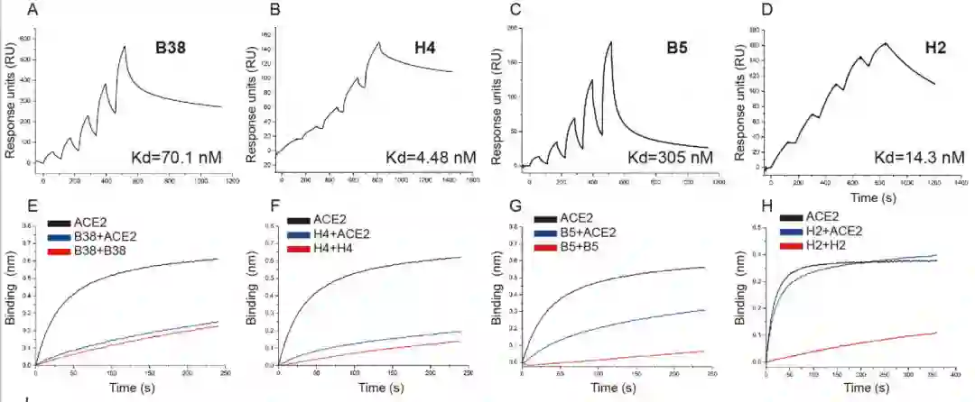 在此项研究中,高福院士领导的团队从一名康复患者体内分离出的4种人源单克隆抗体(mAb),所有这些分离得到的抗体在体外实验中均表现出对SARS-CoV-2的中和能力,其中有两种(B38和H4)可以阻断RBD与细胞受体ACE2的结合。