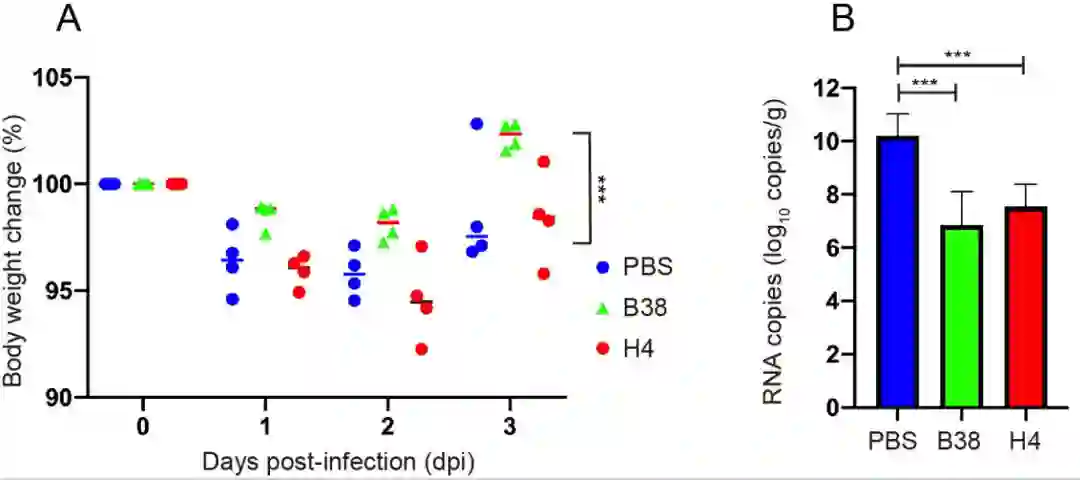 小鼠实验表明,这两种抗体可以有效降低受感染小鼠肺部的新冠病毒滴度。