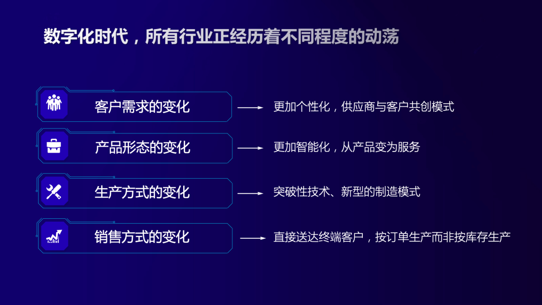 不同行业都正在遭受着行业内外部不同竞争者所带来的竞争格局的冲击。数字化与任何一个传统产业结合,都会形成一个新的经济组织方式,从而对传统的行业和产业形成颠覆性的冲击。与物流相结合就形成了智能物流,与城市管理相结合就形成智慧城市,与金融结合就形成了金融科技。