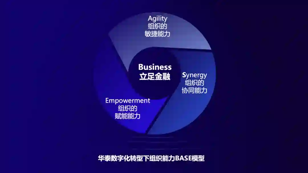 对于华泰来说,就是立足金融的本质,明确数字化在金融领域的商业价值;同时基于全公司的力量去打造敏捷、协同、赋能的组织能力。
