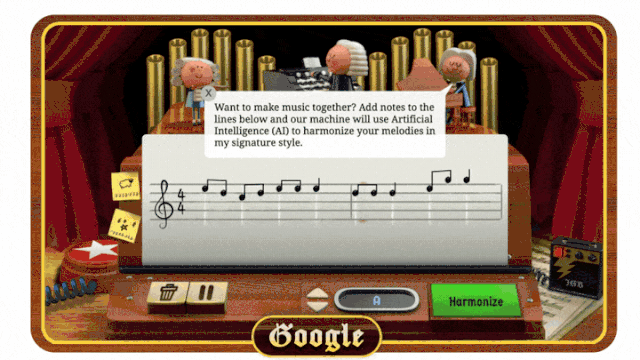 参考资料:[1] Google 为你复活巴赫, https://mp.weixin.qq.com/s/wFcCnzRnI4mPIDOYD1X8yA [2] Counterpoint by Convolution, https://arxiv.org/abs/1903.07227 [3] Music Transformer, https://arxiv.org/abs/1809.04281 [4] The Bach Doodle: Approachable music composition with machine learning at scale, https://arxiv.org/abs/1907.06637 [5] Coconet: the ML model behind today’s Bach Doodle, https://magenta.tensorflow.org/coconet [6] Music Transformer: Generating Music with Long-Term Structure, https://magenta.tensorflow.org/music-transformer [7] 详解Transformer (Attention Is All You Need), https://zhuanlan.zhihu.com/p/48508221 [8] 谷歌机器学习模型新进展:生成时长更长且连贯的音乐, https://cloud.tencent.com/developer/article/1380289 [9] 谷歌发布音乐 AI Doodle 庆祝巴赫生日,这里是它背后的技术, https://www.leiphone.com/news/201904/GQYJhhj91UdjSV2P.html [11] 巴赫诞辰纪念 Doodle, https://www.google.com/doodles/celebrating-johann-sebastian-bach