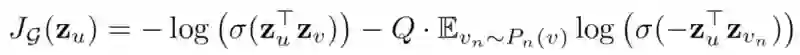 其中u 和v 共同出现在一定长度的随机游走中,而 v_n 是不与u共同出现的负样本。这种损失函数鼓动节点在投影空间中更靠近嵌入距离更近的节点,而与那些相距很远的节点分离。通过这种方法,节点将获得越来越多其邻域的信息。