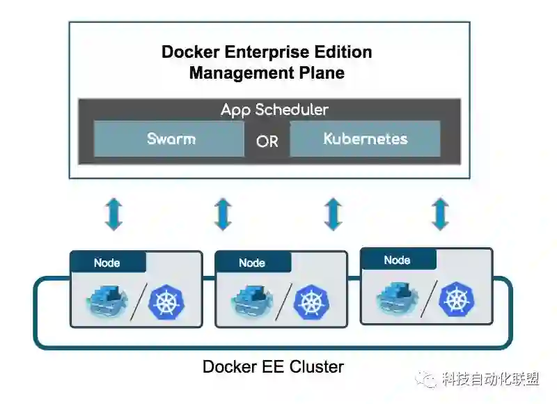 “容器图像”作为创建一个容器的基础,是Docker或其他容器开发工具所使用的一种分发文件的软件手段。在使用容器图像时,软件的分发和部署是用户驱动的和应用驱动的,而不是软件提供者驱动的,这样可在很大程度上减少最终用户的集成负担,使他们把更多的注意力集中在软件的应用上。与采用容器技术相反,如果采用软件打包管理程序,由软件的提供者(而不是由使用者)驱动进行软件分发,则最终用户或系统集成商需要承担责任,确保相关的正确版本汇编,并要正确设置所有运行时的组态参数。通过打包管理程序交付软件实际是为将要集成的软件提供模块化的单元;而容器图像则是从最终用户的角度提供单一的、但全集成的应用软件。正如前面说过的,联网的设备都是由嵌入式系统构成的,特别是对于那些高价值的设备和服务,将来都要进行远程监控、管理、升级和提供服务;而它们的软件栈将需要以高度自动化的水平来提供服务。因而,未来的嵌入式系统包括工业自动化中的嵌入式系统,肯定需要Docker和容器化的编排工具K8来支持。图3表示了Docker运行管理平台需要用像K8或Swarm这样的APP调度和部署工具来运行管理众多的节点集群。