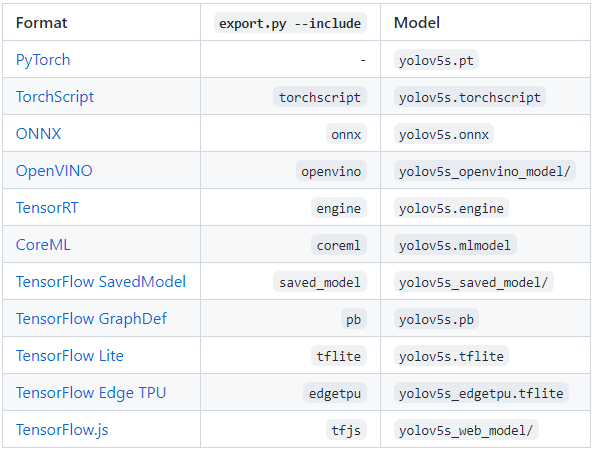 TensorRT支持:TensorFlow, Keras, TFLite, TF.js模型导出现在完全集成使用python export.py -include saved_model pb TFLite tfjs