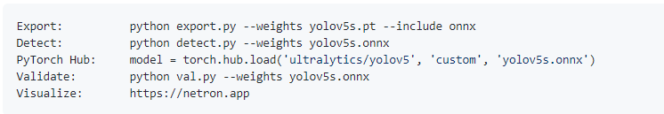 yolov5s.onnx # ONNX Runtime or OpenCV DNN with --dnn